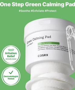 Soothe and balance your complexion with the Cosrx One Step Green Hero Calming Pad. This toning pad contains a 10% Green-Rx Complex, derived from natural plant extracts to help calm irritation. Green Tea Water offers antioxidant properties to help protect the skin against the drying effects of environmental aggressors.