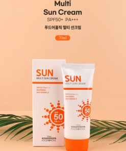 Foodaholic Multi Sun Cream SPF 50 PA +++ Sunscreen provides protection for up to 12 hours against UVA and UVB rays, resistant to water and sweat.