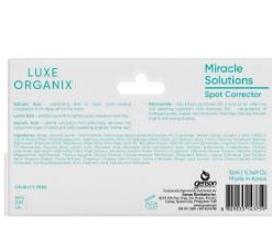 Luxe Organix Miracle Solutions Spot Corrector lightens acne marks, prevents breakouts, and has antimicrobial properties. Infused with 5 powerful ingredients like Salicylic Acid, Lactic Acid, Glycolic Acid, Tea Tree, and Niacinamide. The powerful effect of Luxe Organix Miracle Solutions Spot Corrector is ideal for oily and mildly acne-prone skin.