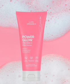 Luxe Organix Power Glow Vita Glow C Whip Cleanser cleanses face without the stripping feeling. Developed with Galactomyces Ferment Filtrate and Vitamin C to reduce signs of aging, It promotes a brighter complexion by reducing impurities and increasing collagen production, revealing a healthier glow.