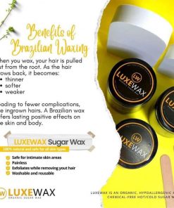 LUXEWAX Organic Sugar Wax Kit is made with 100% natural ingredients for a painless and flawless waxing experience. This DIY LUXEWAX Organic Sugar Wax Kit is effective and easy to use for the entire body, face, legs, underarms, and Brazillian wax.